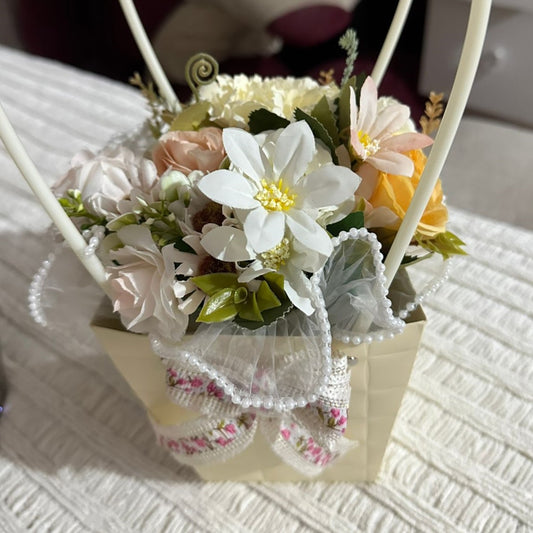 Lampara + luz LED nocturna con Ramo de flores artificiales x7 en maceta de vidrio