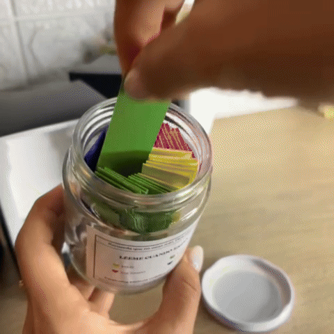 Frasco bíblico™ con 60 versículos cristianos de 6 colores y emociones, tapa corcho y caja negra + espuma